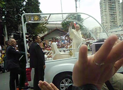 The day after he arrived, me and my friend lined up the street outside one of the gates of the Malacanang Palace, where the President holds office. He had a meeting with the President and afterwards, had a motorcade to Manila Cathedral to say a mass. We were there from 5 am, and had a glance of this well loved Pope at around 11am, when his motorcade passed by. The almost 6 hours wait was worth it, the moment I saw him. I was in awe. It was a weird feeling..yes..very much like love at first sight :).